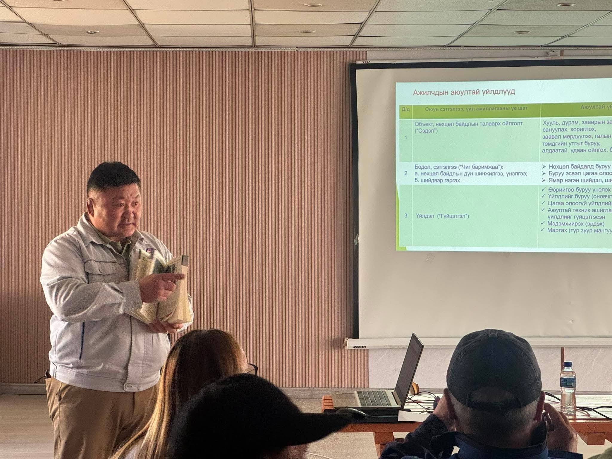 2026 оны 04 сарын 28-ны өдөр Дархан-Уул аймгийн Үйлдвэрчний эвлэлийн холбооны дэргэдэх “Зөв Хөтөч” ХАБЭА сургалтын төвөөс нийт ажилтнуудад Хөдөлмөрийн аюулгүй байдал эрүүл ахуйн сургалт авлаа.